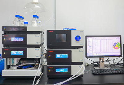 公司技术中心拥有核磁共振仪、高效液相色谱仪(HPLC)、扫描式显微镜、气质联用仪(GC-MS)、液质联用仪(UPLC-MS)、气相色谱仪(GC)、红外光谱仪(IR)、全自动紫外分光光度计等先进分析仪器,为产品研发及分析检测工作提供了优良的硬件设施。